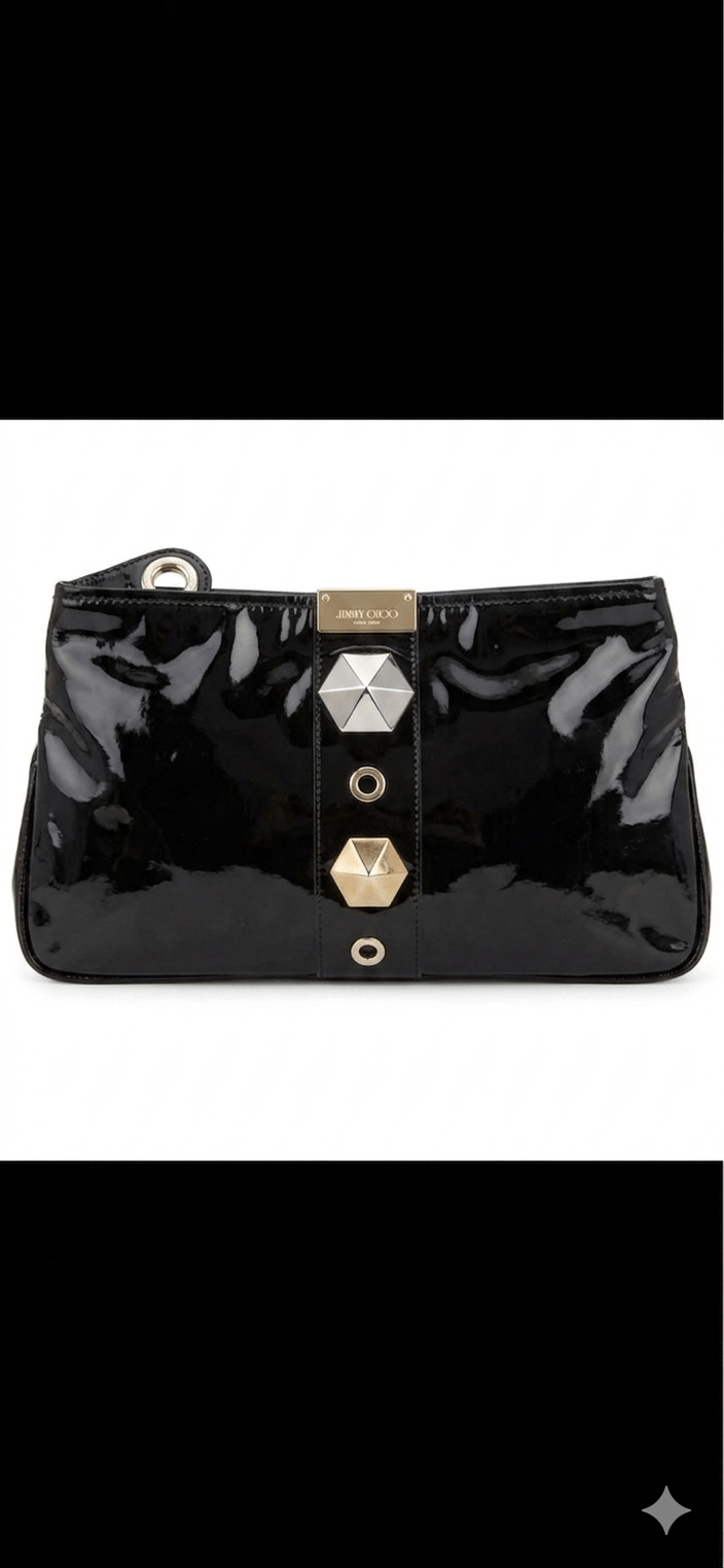 Jimmy Choo Patent leather clutch with studded hardwear detailing